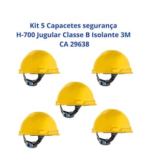 Kit 05 Capacete de Segurança 3M CA 29638 Proteção e Conforto para Ambientes de Trabalho Exigentes O Capacete de Segurança 3M™ H-700 foi desenvolvido para proteger a cabeça do usuário contra impactos de pequenos objetos e perfurações. Fabricado em polietileno de alta densidade, oferece alta resistência em ambientes de trabalho exigentes. A suspensão se conforma à base do crânio, evitando pontos de tensão e proporcionando maior estabilidade e conforto.