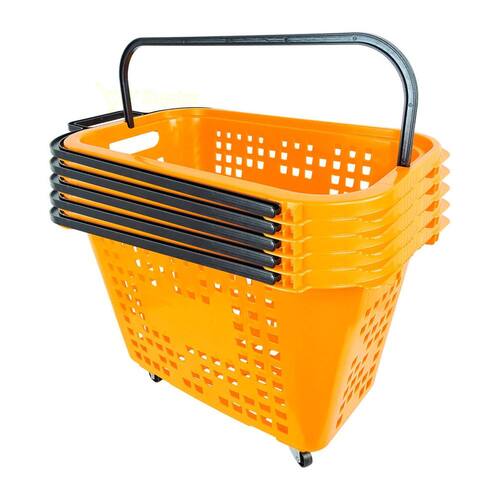 Kit 5 Cestas De Compras Com Rodas 40L Laranja
