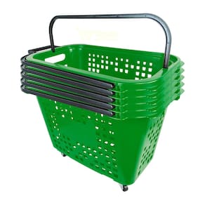 > O KIT CONTÉM- 5x Cestas de Compras com Rodas 40L Verde
