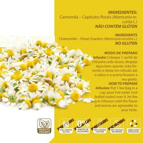 Kit 5 chá camomila clinic mais 10 sachês 10g Sobre o produto: o chá de camomila chámais possui propriedades e antiespasmódica. Possui benefícios calmantes e digestivos, auxiliando a aliviar o , insônia e problemas estomacais. Modo de preparo: coloque 1 sachê de chá para cada xícara, despeje água bem quente não fervente e deixe em infusão até o sabor e o aroma ficarem a seu gosto. Ingredientes: camomila. Após aberto, consumir em até 60 dias. Conserve ao abrigo de luz, calor e umidade. Alergênico: -não contém glúten. Marca: Não Informado