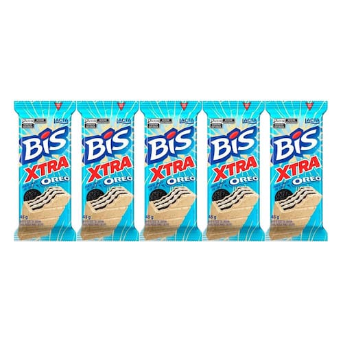 Bis Xtra Oreo 45g - Wafer Recheado Coberto com Chocolate Branco e Biscoito Viva uma experiência inesquecível com Bis Xtra Oreo! A união perfeita entre o wafer crocante e o delicioso sabor de Oreo, agora em uma versão maior e mais indulgente. Com generosas camadas recheadas e cobertas com chocolate branco e pedaços crocantes de biscoito Oreo, Bis Xtra Oreo proporciona uma explosão de sabores incomparável. Ideal para quem busca um doce mais intenso e saboroso, esta embalagem de 45g é prática para levar com você e perfeita para satisfazer sua vontade de algo especial a qualquer momento. Desfrute de cada mordida com Bis Xtra Oreo e tenha uma experiência Xtra deliciosa! O Chocolate Bis Lacta Xtra Branco combina o Bis com um toque Xtra de chocolate Lacta, que você não vai conseguir para de comer. Contém derivados de soja. Contém derivados de leite e derivados. Contém derivados de trigo, cevada e amendoim. Pode conter amêndoa, castanha de caju, avelã, aveia, centeio e látex natural. Contém glúten. Ean: 7622300988517