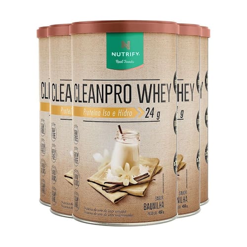 Kit 5 clean pro whey hidrolisado baunilha nutrify 450g Benefícios: aumento da massa muscular e longevidade. Uma suplementação proteica leve, de fácil digestibilidade e livre de compostos artificiais. Cleanpro whey nutrify oferece a proteína de soro do leite isolada e proteína de soro do leite hidrolisada. Rico em aminoácidos essenciais, origina uma fórmula capaz de ofertar 5 g de bcaa por dose. Na origem da matéria-prima, whey protein proveniente de gado alimentado somente com pasto grass-fed . Cleanpro whey nutrify utiliza estévia e taumatina, adoçantes 100% oriundos de fontes naturais. Nutrify valoriza a origem de cada ingrediente, respeita a integridade de suas fontes naturais e dos envolvidos em sua produção. É assim que criamos produtos saudáveis e saborosos, que fazem bem para as pessoas e para o planeta. Acreditamos que nutrir corpo e mente de modo saudável nos torna capazes de alimentar o mundo com atitudes positivas. Ingredientes: proteína de soro do leite isolada, proteína de soro do leite hidrolisada, aromatizante natural e edulcorantes naturais estévia e taumatina. Alérgicos: contém derivados de leite e soja. Ingrediente utilizado no processo de fabricação da proteína do soro de leite com função de instantaneização. Não contém glúten. Contém lactose. Contém aromatizante. Apresentação: embalagem disponível: lata contendo suplemento em pó. Sabor baunilha. Peso líquido: 450 g produto classificado como: suplemento alimentar de proteínas em pó sabor de baunilha. Conservação: conservar este produto ao abrigo de luz, calor e umidade, antes e após o primeiro consumo. Marca: Não Informado