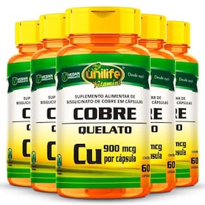 Kit 5 Cobre Quelato Unilife 60 cápsulas