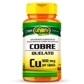 Suplemento alimentar de bisglicinato de cobre em cápsulas. Ele é um elemento químico de símbolo Cu do latim cuprum . Este suplemento nutricional é muito importante devido a sua influência no bom funcionamento do organismo humano.