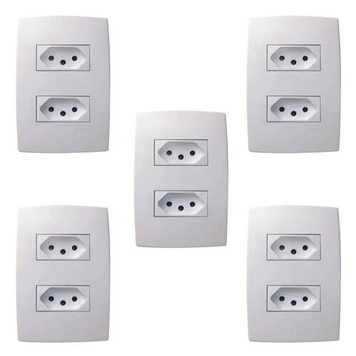 Da marca Legrand. Produto feito em termoplastico na cor Branco acetinado, com tensão nominal de 250V e corrente nominal de 10A. É do tipo 2P+T, montado em placa com tamanho padrão 2x4.Kit com 5 unidades.- Qual a diferença entre o simples e o paraleloR: A principal diferença entre um simples e um é o número de pontos de controle de uma luz. A simples permite ligar e desligar uma luz a partir de um único ponto de controle, o permite ligar e desligar uma luz a partir de dois ou mais pontos de controle diferentes. Marca: Não Informado