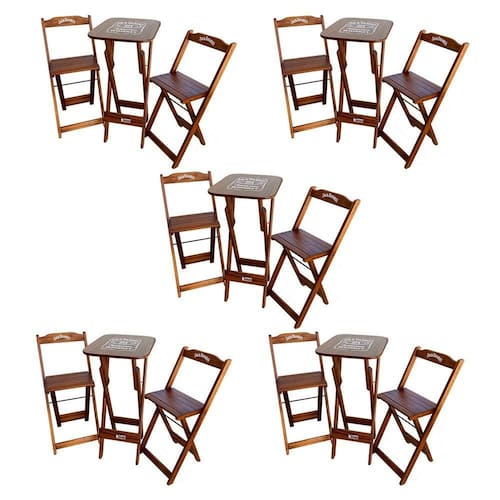 Kit 5 Conjuntos Bistrô Mesa Com 2 Banquetas Dobráveis De Madeira Personalizada Jack - Imbuia