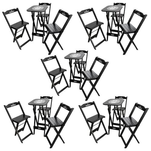 Kit 5 Conjuntos Bistrô Mesa Com 3 Banquetas Dobráveis De Madeira Personalizada Hei - Preta