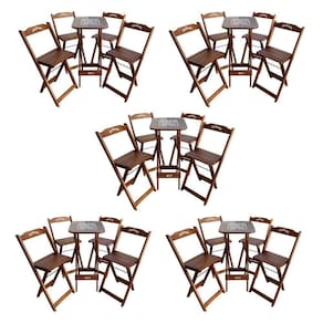 Kit 5 Conjuntos Bistrô Mesa Com 4 Banquetas Dobráveis De Madeira Personalizada Jack - Imbuia