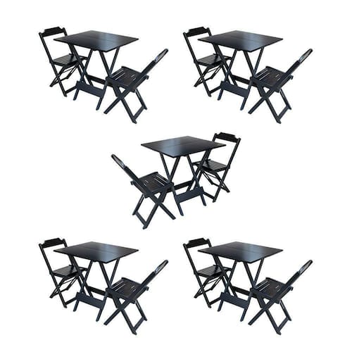 Kit 5 Conjuntos De Mesa Dobravel Com 2 Cadeiras De Madeira 70x70 Para Restaurante E Bar - Preto