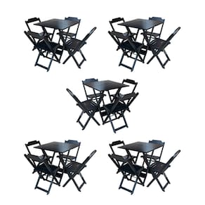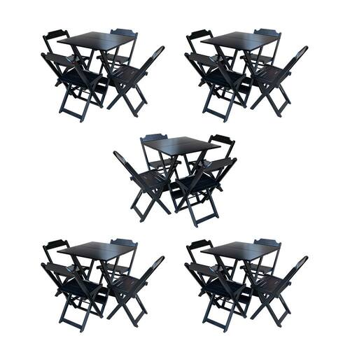 Kit 5 Conjuntos de Mesa Dobravel com 4 Cadeiras de Madeira 70x70 para Restaurante e Bar - Preto - Preto