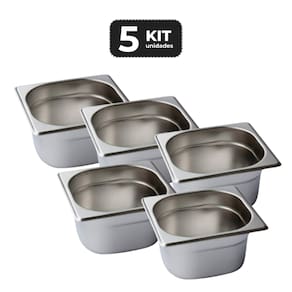 Kit 5 Cuba Sem Alca Inox 1/6 Gn 150 Para Buffet