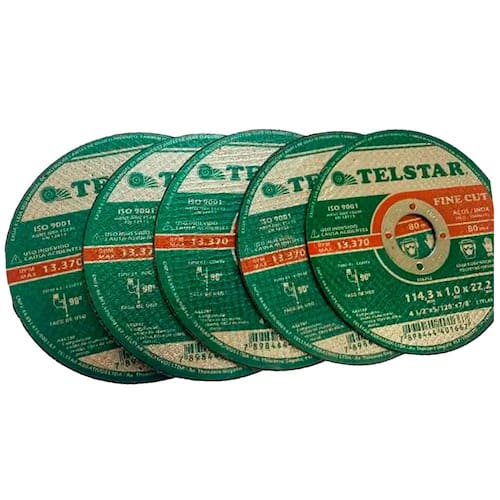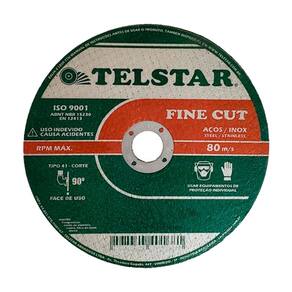 Marca: Telstar Superfícies aptas: Aço, Aço Inox, Ferro Diâmetro central: 22mm Tipo de disco: De corte. Diâmetro do disco de corte: 114.3 mm. Material: Óxido de alumínio. Modelo: Fine Cut 2T. Espessura: 1.4 mm.