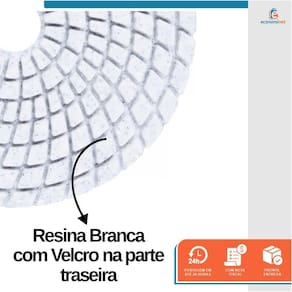 Disco de lixa diamantado para polimento, abrasivo em resina branca, com pluma na parte traseira. Indicado para lixar e polir mármore e porcelanato.Para uso em disco de borracha 100mm - StarferEspecificações técnicas:Diâmetro do disco: 100mm.Diâmetro do furo: 16mm.Rotação máxima: 4800rpm.Uso: Furadeira e Esmerilhadeira.Quantidade: 5 unidades.Grão: Cor laranja #1500Fixa Fácil: SimRef.: 4003950Marca: Starfer