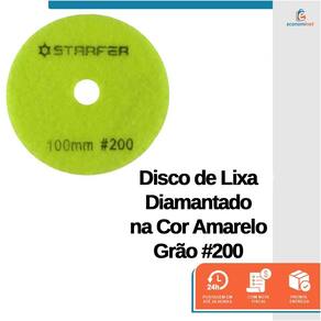 Disco de lixa diamantado para polimento, abrasivo em resina branca, com pluma na parte traseira. Indicado para lixar e polir mármore e porcelanato.Para uso em disco de borracha 100mm - StarferEspecificações técnicas:Diâmetro do disco: 100mm.Diâmetro do furo: 16mm.Rotação máxima: 4800rpm.Uso: Furadeira e Esmerilhadeira.Quantidade: 5 unidades.Grão: Cor amarelo #200Fixa Fácil: SimRef.: 4003926Marca: Starfer