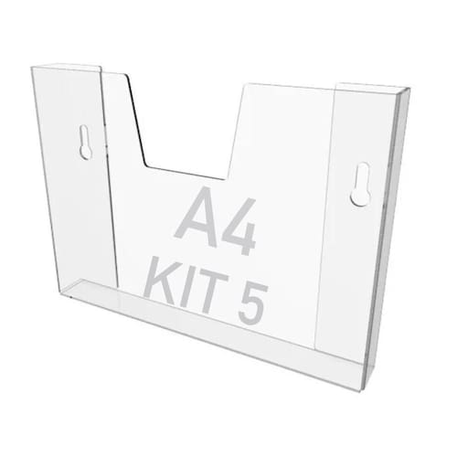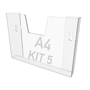 Kit com 5 porta folhas display parede A4 horizontal/deitado é um item projetado para a exposição de diversos tipos de documentos, avisos, materiais impressos, prontuários, entre outros.