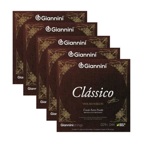 Kit 5 Encordoamento Violão Nylon Clássico Bronze 65/35 GENWXPA Extra Pesada