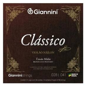 Kit 5 Encordoamento Violão Nylon Giannini Clássico Tensão Média