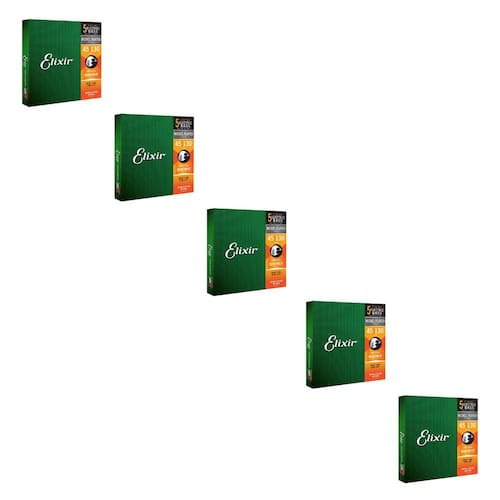 Kit 5 Encordoamentos Baixo 5 Cordas 045 Elixir Light Long Scale Nanoweb Made In USA 14202