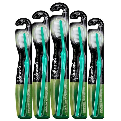 JOHNSONS Ultra Clean é uma escova de dentes de qualidade a um preço acessível. Seu cabo angulado possui maior alcance e suas cerdas têm duas funções: as internas limpam os dentes, enquanto as externas alcançam e limpam suavemente a área entre a gengiva e os dentes.