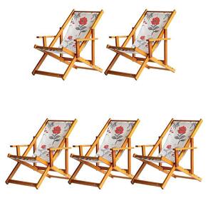 Kit 5 Espreguiçadeira Preguiçosa Dobrável Mel Cb-cinza Floral 5 ESPREGUIÇADEIRAS ENVERNIZADA MEL C/BSabe aquele final de tarde que você tanto espera para tirar um descanso merecido? Ou aquela viagem para a praia programada a meses com a família? Pois é, nossas cadeiras espreguiçadeira serve exatamente para esses momentos, com várias opções de cores, os tecidos além de charmosos são hidro-repelentes e se adequam a qualquer ambiente, facilmente removíveis para higienização.Estrutura 100% de madeira maciça de ótima qualidade, a espreguiçadeira é totalmente dobrável e reclinável (4 posições de ângulo), com descanso para braço, sendo possível montar invertida sem o encosto de braço, perfeita para seu lazer em todos os ambientes, esse é o item que definitivamente não pode faltar na vida de quem de fato, quer aproveitar bons momentos! FICHA TÉCNICA DO PRODUTO:04 Níveis de Regulagem de Altura;Tecido Reforçado;Fabricada em Madeira Maciça Pinus;Peso aproximado: 7,5 Kg;Suporta aproximadamente 120 kg;Cor da Madeira: Mel Dimensões aproximadas do Produto:Altura 1: 69 cm;Altura 2: 82 cm;Altura 3: 91 cm;Altura 4: 100 cm;Profundidade: 105 cm. Dimensão aproximada total:Comprimento: 135 cm;Largura: 66 cm; Informações Adicionais:Garantia: 90 dias contra defeitos de fabricação.Acompanha 5 cadeiras Obs. A cor pode variar da foto conforme a tonalidade da madeira e iluminação.. !! Marca: Brasil Móveis
