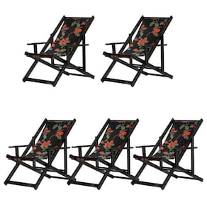 Kit 5 Espreguiçadeiras Dobrável Black Cb-preto Flores 5 ESPREGUIÇADEIRAS ENVERNIZADAS BLACK C/BSabe aquele final de tarde que você tanto espera para tirar um descanso merecido? Ou aquela viagem para a praia programada a meses com a família? Pois é, nossas cadeiras espreguiçadeira serve exatamente para esses momentos, com várias opções de cores, os tecidos além de charmosos são hidro-repelentes e se adequam a qualquer ambiente, facilmente removíveis para higienização.Estrutura 100% de madeira maciça e verniz especial, que garante sua qualidade e durabilidade, a espreguiçadeira é totalmente dobrável e reclinável (4 posições de ângulo), com descanso para braço, sendo possível montar invertida sem o encosto de braço, perfeita para seu lazer em todos os ambientes, seja ele externo ou interno, esse é o item que definitivamente não pode faltar na vida de quem de fato, quer aproveitar bons momentos! FICHA TÉCNICA DO PRODUTO:04 Níveis de Regulagem de Altura;Tecido Reforçado;Fabricada em Madeira Maciça Pinus;Peso aproximado: 7,5 Kg;Suporta aproximadamente 120 kg;Cor da Madeira: Preta Dimensões aproximadas do Produto:Altura 1: 69 cm;Altura 2: 82 cm;Altura 3: 91 cm;Altura 4: 100 cm;Profundidade: 105 cm. Dimensão aproximada total:Comprimento: 135 cm;Largura: 66 cm; Informações Adicionais:Garantia: 90 dias contra defeitos de fabricação.Acompanha 5 cadeiras Obs. A cor pode variar da foto conforme a tonalidade da madeira e iluminação.. !! Marca: Brasil Móveis