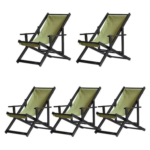 Kit 5 Espreguiçadeiras Dobrável Black Cb-verde 5 ESPREGUIÇADEIRAS ENVERNIZADAS BLACK C/BSabe aquele final de tarde que você tanto espera para tirar um descanso merecido? Ou aquela viagem para a praia programada a meses com a família? Pois é, nossas cadeiras espreguiçadeira serve exatamente para esses momentos, com várias opções de cores, os tecidos além de charmosos são hidro-repelentes e se adequam a qualquer ambiente, facilmente removíveis para higienização.Estrutura 100% de madeira maciça e verniz especial, que garante sua qualidade e durabilidade, a espreguiçadeira é totalmente dobrável e reclinável (4 posições de ângulo), com descanso para braço, sendo possível montar invertida sem o encosto de braço, perfeita para seu lazer em todos os ambientes, seja ele externo ou interno, esse é o item que definitivamente não pode faltar na vida de quem de fato, quer aproveitar bons momentos! FICHA TÉCNICA DO PRODUTO:04 Níveis de Regulagem de Altura;Tecido Reforçado;Fabricada em Madeira Maciça Pinus;Peso aproximado: 7,5 Kg;Suporta aproximadamente 120 kg;Cor da Madeira: Preta Dimensões aproximadas do Produto:Altura 1: 69 cm;Altura 2: 82 cm;Altura 3: 91 cm;Altura 4: 100 cm;Profundidade: 105 cm. Dimensão aproximada total:Comprimento: 135 cm;Largura: 66 cm; Informações Adicionais:Garantia: 90 dias contra defeitos de fabricação.Acompanha 5 cadeiras Obs. A cor pode variar da foto conforme a tonalidade da madeira e iluminação.. !! Marca: Brasil Móveis
