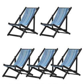 Kit 5 Espreguiçadeiras Dobrável Black Sb-listras Azuis 5 ESPREGUIÇADEIRAS ENVERNIZADAS BLACK S/BSabe aquele final de tarde que você tanto espera para tirar um descanso merecido? Ou aquela viagem para a praia programada a meses com a família? Pois é, nossas cadeiras espreguiçadeira serve exatamente para esses momentos, com várias opções de cores, os tecidos além de charmosos são hidro-repelentes e se adequam a qualquer ambiente, facilmente removíveis para higienização.Estrutura 100% de madeira maciça e verniz especial, que garante sua qualidade e durabilidade, a espreguiçadeira é totalmente dobrável e reclinável (4 posições de ângulo), perfeita para seu lazer em todos os ambientes, seja ele externo ou interno, esse é o item que definitivamente não pode faltar na vida de quem de fato, quer aproveitar bons momentos! FICHA TÉCNICA DO PRODUTO:04 Níveis de Regulagem de Altura;Tecido Reforçado;Fabricada em Madeira Maciça Pinus;Peso aproximado: 7,5 Kg;Suporta aproximadamente 120 kg;Cor da Madeira: PretaAcabamento: Envernizada Dimensões aproximadas do Produto:Altura 1: 69 cm;Altura 2: 82 cm;Altura 3: 91 cm;Altura 4: 100 cm;Profundidade: 105 cm. Dimensão aproximada total:Comprimento: 135 cm;Largura: 60 cm; Informações Adicionais:Garantia: 90 dias contra defeitos de fabricação.Acompanha 5 cadeiras Obs. A cor pode variar da foto conforme a tonalidade da madeira e iluminação..