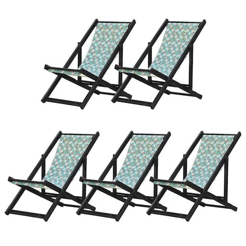 Kit 5 Espreguiçadeiras Dobrável Black Sb-triang Azul 5 ESPREGUIÇADEIRAS ENVERNIZADAS BLACK S/BSabe aquele final de tarde que você tanto espera para tirar um descanso merecido? Ou aquela viagem para a praia programada a meses com a família? Pois é, nossas cadeiras espreguiçadeira serve exatamente para esses momentos, com várias opções de cores, os tecidos além de charmosos são hidro-repelentes e se adequam a qualquer ambiente, facilmente removíveis para higienização.Estrutura 100% de madeira maciça e verniz especial, que garante sua qualidade e durabilidade, a espreguiçadeira é totalmente dobrável e reclinável (4 posições de ângulo), perfeita para seu lazer em todos os ambientes, seja ele externo ou interno, esse é o item que definitivamente não pode faltar na vida de quem de fato, quer aproveitar bons momentos! FICHA TÉCNICA DO PRODUTO:04 Níveis de Regulagem de Altura;Tecido Reforçado;Fabricada em Madeira Maciça Pinus;Peso aproximado: 7,5 Kg;Suporta aproximadamente 120 kg;Cor da Madeira: PretaAcabamento: Envernizada Dimensões aproximadas do Produto:Altura 1: 69 cm;Altura 2: 82 cm;Altura 3: 91 cm;Altura 4: 100 cm;Profundidade: 105 cm. Dimensão aproximada total:Comprimento: 135 cm;Largura: 60 cm; Informações Adicionais:Garantia: 90 dias contra defeitos de fabricação.Acompanha 5 cadeiras Obs. A cor pode variar da foto conforme a tonalidade da madeira e iluminação..
