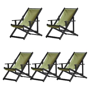 Kit 5 Espreguiçadeiras Preguiçosa Dobrável Envernizada Black em Madeira Maciça com Tecido - Verde