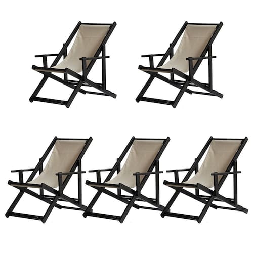 Espreguiçadeira reclinável com 4 posições, fabricada em madeira maciça eucalipto com acabamento envernizado. Dobrável, resistente (suporta até 100kg) e com tecido hidro-repelente removível para fácil limpeza. Ideal para praia, piscina ou varanda.
