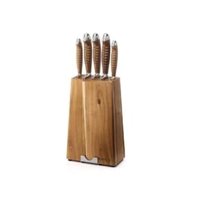Conjunto Com 5 Facas Para Cozinha + 1 Cepo Faqueiro Mundial Material: Aço inox, Madeira Cor do cabo/cepo: Marrom Suporte para tablet Marca: Mundial Linha: Renaissance Contém 5 peças + cepo: 1 Faca Legumes 3.5: 22 x 2,4 x 2 cm 1 Faca Cozinha 6: 18 x 2,5 x 2 cm 1 Faca Pão 8: 35 x 3,3 x 2,5 cm 1 Faca Carnes 8: 35 x 4,5 x 2,5 cm 1 Faca Carnes 10: 40 x 5 x 2,5 cm 1 Cepo: 17 x 9,5 x 28 cm Obs: Produto não acompanha tablet