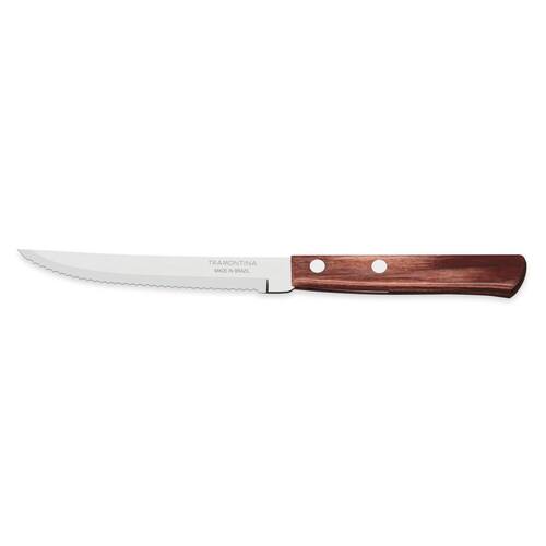 Rebites de alumínio. Pode ir à máquina de lavar louças facilitando seu dia a dia. Seu fio possui grande durabilidade e resistência por ser produzido em aço inox e receber tratamento térmico e pelo seu cabo ser em madeira tratada Polywood, a peça combina com ambientes rústicos e oferece todo o charme que seu churrasco merece. Medidas aproximadas do produto - Comprimento: 21,1 cm - Altura: 0,9 cm - Largura: 1,9 cm - Peso: 31,5 g