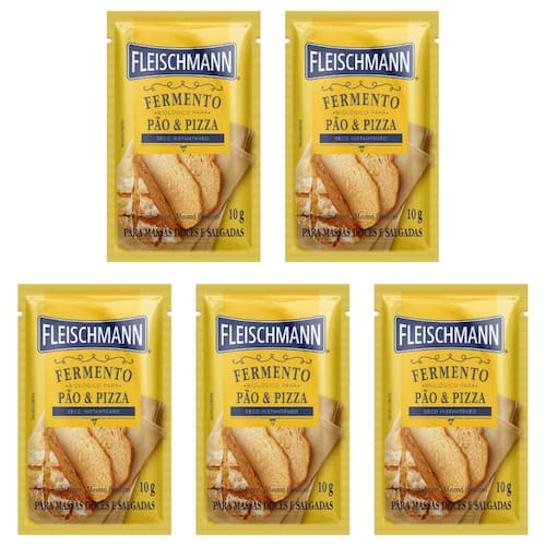 Kit com 5 Fermento Biológico Seco Instantâneo Para Massas Salgadas Pão E Pizza - Fleischmann