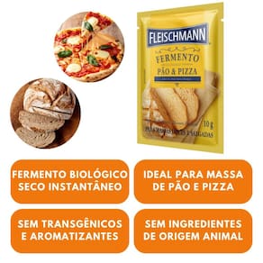 Modo de preparo: Misture o fermento biológico instantâneo Fleischmann com a farinha antes de acrescentar os demais