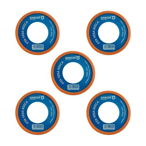 Kit 5 Fitas Veda Rosca 12mm 10 Metros Vedação Hidráulica Canos Torneiras Teflon
