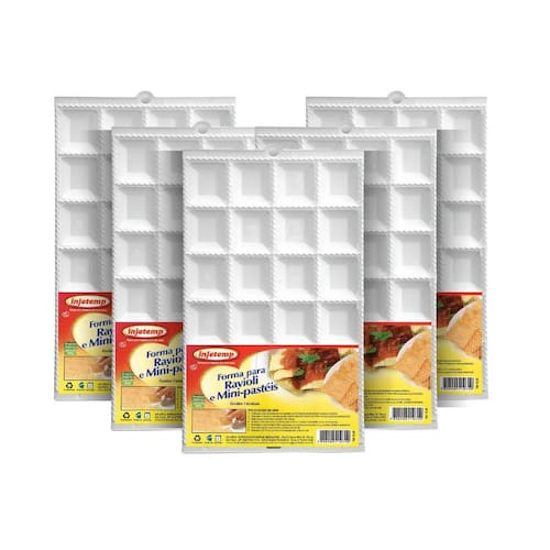 Kit 5 Forma Ravioli E Mini Pastel Faz 24 Por Vez Forma para Ravioli e Pastéis c/24cav Descrição: Feita toda em material atoxico e livre de BPA é extremamente prática pra fazer mini pasteis e ravioli. Muito simples de usar, basta colocar a massa sobre a forma, colocar os recheios na cavidades, por outra camada de massa por cima e passar um rolo para lacrar os pasteis. Obs: Fotos meramente ilustrativas