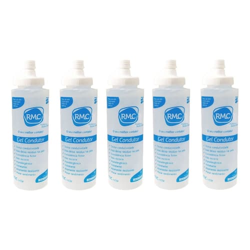 KIt 5- Gel Incolor De 300 ML Hipoalergênico Certificado Pela AnvisaO Gel Condutor Incolor é utilizado em diversos exames de eletrocardiograma para que possa conduzir impulsos elétricos de aparelhos tais como ultrassom de imagem e estética (alta e baixa potência), ecógrafos, dopplers, desfibriladores, TENS e FES, bisturis elétricos e qualquer aparelho de eletroterapia que utilize gel para meio de contato.Propriedades:Tem uma ótima condutividade, altamente deslizante, hipoalergênico, hidratante e não irrita a pele. Obtendo uma viscosidade ideal, pois não escorre, e proporciona um maior rendimento. É atóxico, inodoro, com PH neutro, hidrossolúvel e facilmente removível. Não mancha a roupa, não deixa resíduo na pele e não é gorduroso. Por ser isento de sal e álcool, não danifica o transdutor e não provoca o ressecamento do cabeçote do aparelho, aumentando assim a sua vida útil. Indicado pelos maiores fabricantes de equipamentos médicos e estéticos. Possui teste de análise dermatológica aprovado pelo Instituto de Pesquisa Adolfo Lutz, um dos mais renomados institutos de pesquisas do Brasil.Informações:Ideal:eletrocardiogramaultrassomEcógrafosDopplersDesfibriladoresBisturis elétricosTENS / FESPH NeutroGramas: 300gMarca: RMC