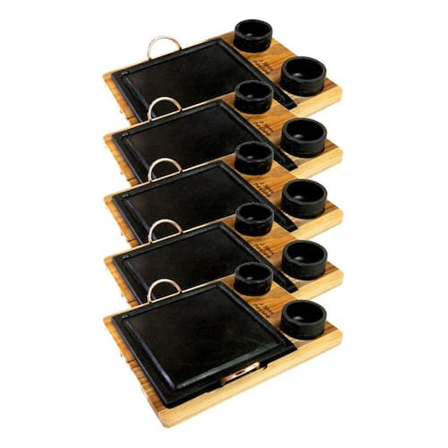 Kit 5 Grelha 10 Molheiras em Pedra Sabão e Suporte P 20x20cm