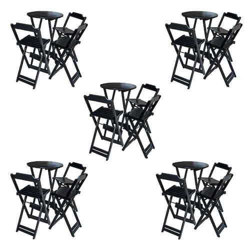 Kit 5 Jogos De Mesa Bistrô De Madeira Dobrável Com 3 Banquetas - Preto