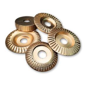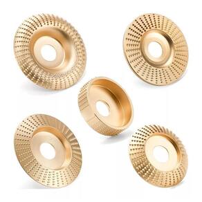 Especificações Técnicas: Marca: Titanium Modelo: 7987 Quantidade: 5 discos Diâmetro do Disco curvado: 100 mm Diâmetro do Disco plano: 100 mm Diâmetro do Disco Inclinado: 100mm Diâmetro do Disco Cilindro: 75mm Diâmetro do Disco Arco: 85mm Dametro do Eixo interno: 22mm Aplicações: Desbaste, escultura e acabamento Material: Revestimento em titânio Compatibilidade: Esmerilhadeiras e ferramentas rotativas Itens Inclusos: