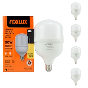 A Lâmpada Alta Potência 50W 3000k E-27 Bivolt Foxlux possui um design compacto e moderno. Tem a luz na cor amarela, que oferece uma luz suave, sendo ideal para sala de estar, quartos, e ambientes comerciais que buscam um toque de conforto. Mesmo em ambientes que necessitam de grande intensidade de luz.