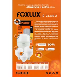 A Foxlux é uma marca renomada, com mais de 20 anos de experiência no mercado de produtos para construção e manutenção de ambientes residenciais e comerciais. Presente em todo o Brasil, a Foxlux se destaca pela qualidade, inovação e segurança de seus produtos, oferecendo soluções eficazes e duráveis nos segmentos de Iluminação, Ferramentas, Materiais Elétricos e Utilidades. Com um compromisso constante com a excelência, a Foxlux é sinônimo de confiança e desempenho superior, garantindo produtos que atendem às necessidades dos consumidores com eficiência e durabilidade.