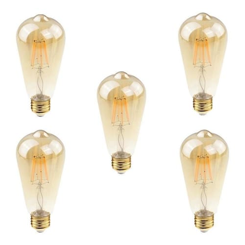 Lâmpada Filamento Led Vintage E27 Industrial Vidro Ambar Decorativa 4,5W 2300k -- Kit 5 Unidades -- A Lâmpada Filamento Led chegou para substituir a lâmpada de filamento de carbono tradicional. Design retro, com a economia do LED. Descrição: - Soquete: E27 - Potência: 4W - ST64 - Temperatura de cor: 2200K luz quente - Durabilidade: 15.000 horas - Tensão: 100-240V - Fluxo luminoso: 400lm - Frequência: 50-60 Hz - Grau de proteção: IP20
