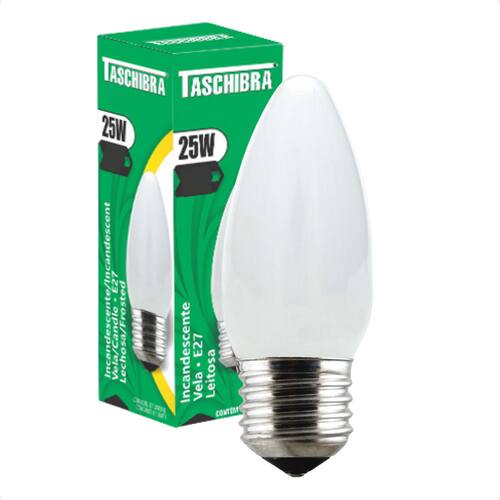 Kit 5 Lâmpadas Incandescente Taschibra Vela 25W E27 Leitosa 110V