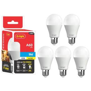 Kit 5 Lâmpadas Led 9w E27 Autovolt 6500k Branco Frio Cor Da Luz Branca Ultra Economica para Sala Quarto Cozinha Banheiro Kit com Cinco Lâmpadas A60 G-Light: