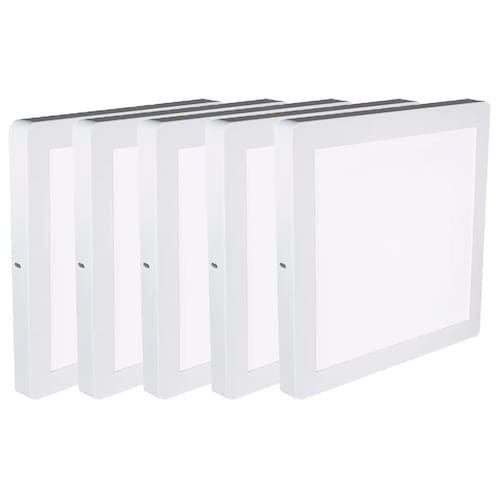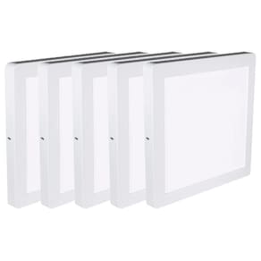 Potência: 18W. Temperatura: 3.000K. Lúmens: 1.040. Voltagem Bivolt: 127-220V. Dimensões: 210 x 210 x 24. Contém 5 Unidades Neste Kit.