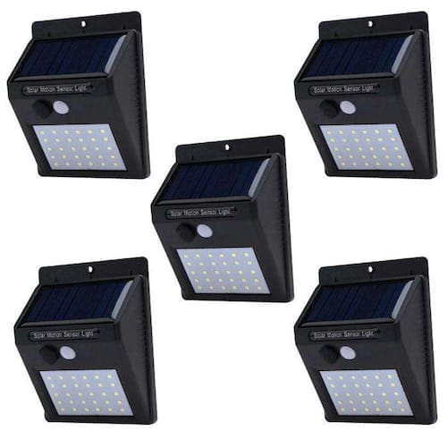 Kit 5 Luminária Solar De Parede 30 Leds 6w Sensor De Movimento Perfeita para quintal, varanda, garagem entre outros ambientes externos, suportando diversas condições climáticas.