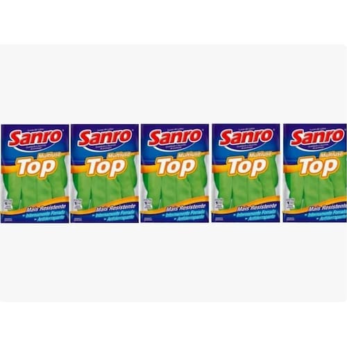 Kit 5 Luva De Borracha Sanro Top Verde - P