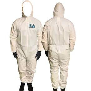 Especificações técnicas - Material: não tecido de fibra de polipropileno microporoso respirável. - Fechamento: zíper frontal para fácil uso e remoção. - Elásticos: no capuz, cintura, punhos e tornozelos para melhor ajuste e vedação. - Cor: Branco. - Norma técnica: ISO 16602:2007