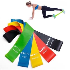 Kit 5 elásticos Mini Band 5 Níveis Malhar em casa Estilo Academia Treino